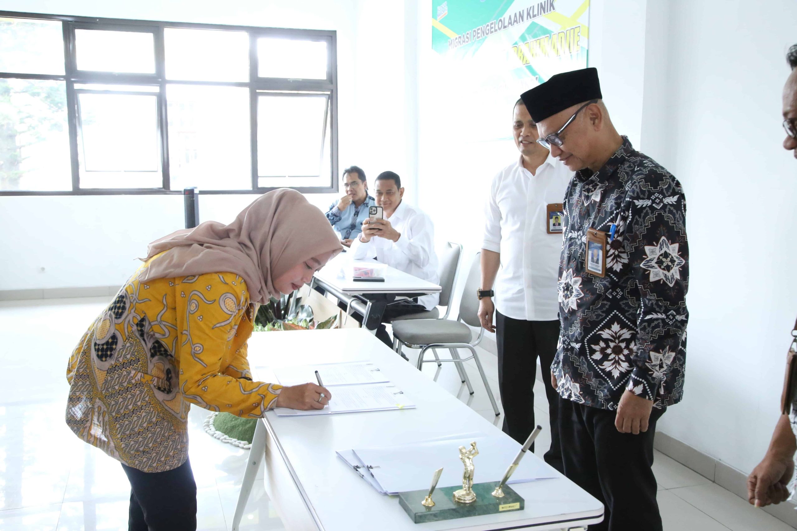Pada penghujung rangkaian acara, Rektor Universitas Siliwangi bersama perwakilan pegawai Klinik Universitas Siliwangi melakukan penandatanganan kontrak pegawai secara simbolis yang diwakili oleh dr. Kamiel Roesman Bachtiar, M.Si., Siti Sarah Chandriani, S.Farm., Apt., dan Novi Widiyanti, S.KM.
