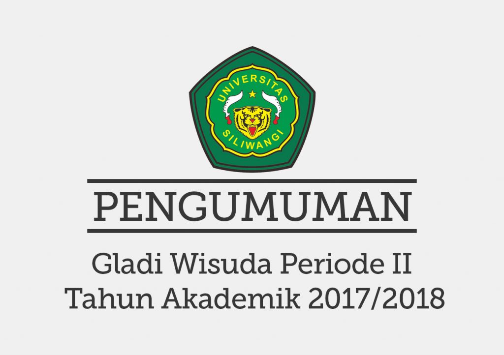 Bagi mahasiswa yang akan melaksanakan wisuda pada tanggal 7 April 2018, wajib mengikuti Gladi Pelaksanaan Wisuda, pada: Hari, tanggal Waktu Tempat : Jum’at, 6 April 2018 : 07.30 s.d. Selesai : Gedung Mandala Universitas Siliwangi Dan mengisi absen untuk kegiatan wisuda di depan Gedung Mandala Universitas Siliwangi. TTD. Panitia Wisuda